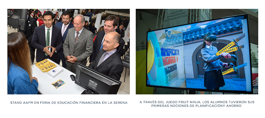 Por 3er año la Asociación participa en la feria de educación financiera organizada por la Superintendencia de Bancos e Instituciones Financieras. Bajo el lema “Planifícate, ahorra y alcanza tus sueños” con una dinámica inspirada en el popular juego Fruit Ninja, estudiantes y público en general de Santiago, La Serena y Los Ángeles, pudieron aprender de manera lúdica como alcanzar los objetivos y metas por medio de la planificación financiera, poniendo énfasis en el ahorro y la racionalización de los gastos.