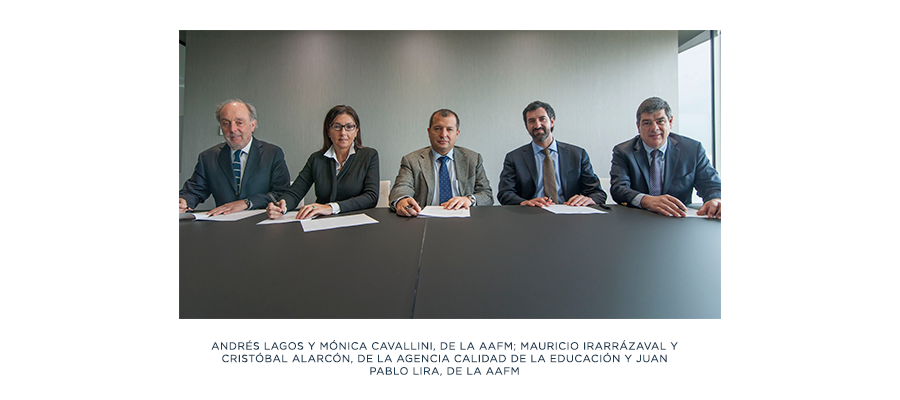 La Agencia de la Calidad de la Educación y la AFM firmaron un acuerdo de colaboración para promover la formación financiera en los establecimientos de enseñanza media del país, lo que permitirá aumentar la cobertura de este tipo de programas. En el marco de esta alianza, se comenzaron a realizar jornadas teórico-prácticas para docentes y representantes de centros de alumnos de 40 colegios, junto con el desarrollo de material didáctico de apoyo, y poner a disposición en formato digital en los sitios web de ambas instituciones un taller autoadministrable para ser trabajado en cualquier escuela de Chile.