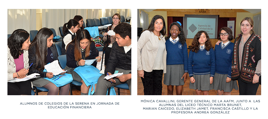 Con la participación de alumnos de enseñanza media, profesores de Historia y directivos de diversos establecimientos, junto a autoridades de la Cuarta Región, la AFM realizó el primer taller de educación financiera en el marco del convenio de colaboración que suscribió con la Agencia de Calidad de la Educación para entregar orientación, y herramientas que aporten a la formación financiera. La actividad se llevó a cabo en el Liceo Técnico Marta Brunet de La Serena con la presencia del Jefe de Educación de la Seremi, Héctor Orellana, quien señaló la importancia de que existan alianzas como ésta entre el sector público y privado, destacando que “en este caso, la Asociación de Fondos Mutuos fortalece esta acción de educación financiera para los estudiantes”.