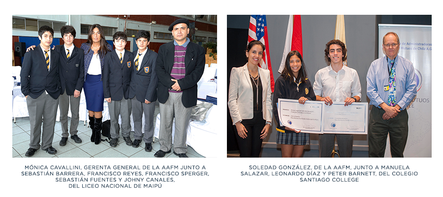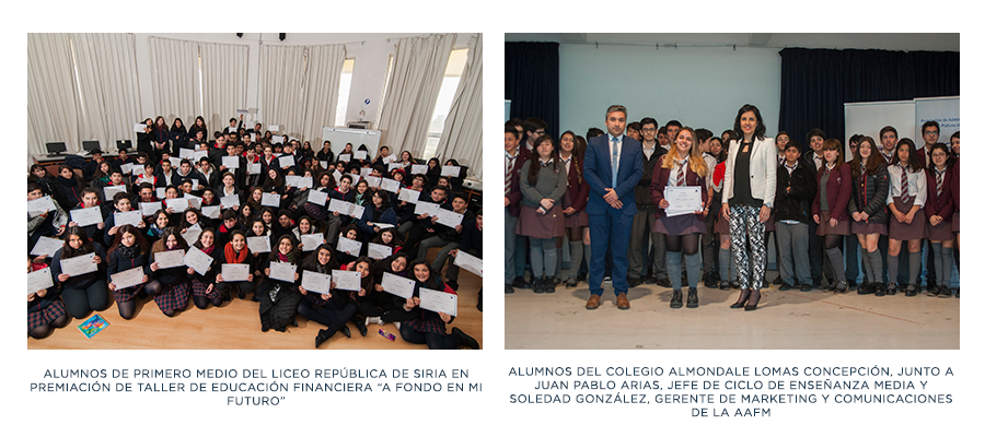 Como un reconocimiento a su permanente esfuerzo en el ámbito de la educación financiera entre estudiantes de enseñanza media y superior, la Asociación de  Fondos Mutuos (AFM) obtuvo el segundo lugar en la categoría “Aporte en Educación Financiera” del premio que entrega la Superintendencia de Bancos e Instituciones Financieras (ex SBIF, actual CMF) y el Instituto Milenio de la Universidad de Chile (MIPP), por su programa “A Fondo en mi Futuro”, el cual se imparte en establecimientos de educación media de Santiago, Iquique y Concepción, con el fin de entregar conocimientos sobre el manejo de las finanzas personales, ahorro y endeudamiento responsable.